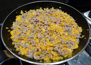 5. Bak het gehakt rul met de ui. Kruid met peper, zout en oregano.